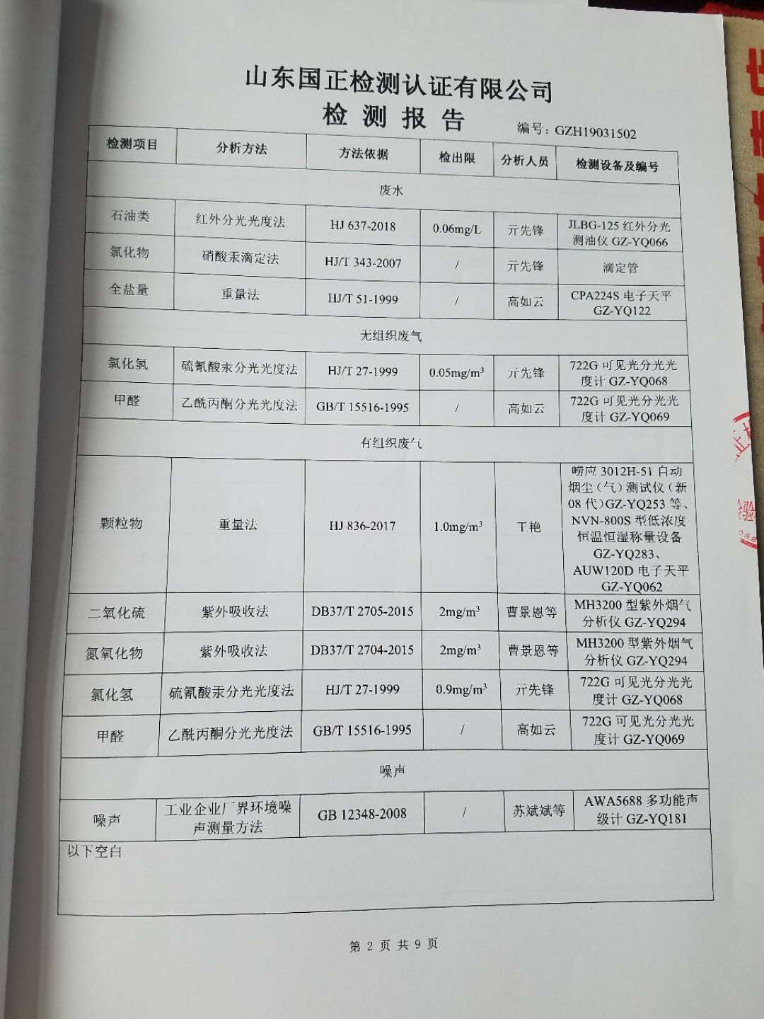 | 主要內(nèi)容 | 與山東國(guó)正檢測(cè)認(rèn)證有限公司簽訂環(huán)境檢測(cè)協(xié)議,委托第三方機(jī)構(gòu)對(duì)我公司進(jìn)行環(huán)境檢測(cè),檢測(cè)頻次、地點(diǎn)及項(xiàng)目等與環(huán)評(píng)報(bào)告要求一致。 |