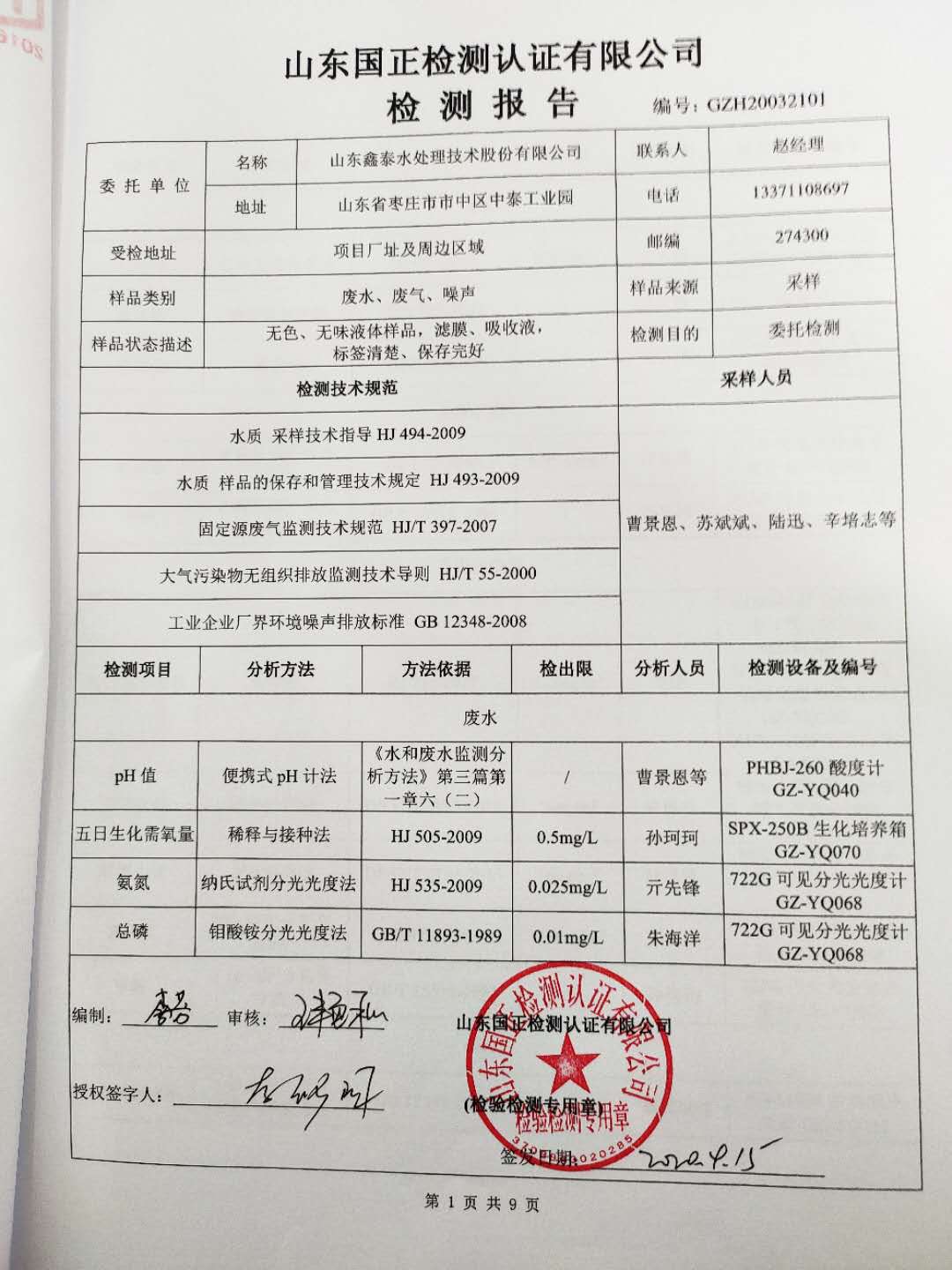 | 單位名稱 | 山東鑫泰水處理技術(shù)股份有限公司 | |||