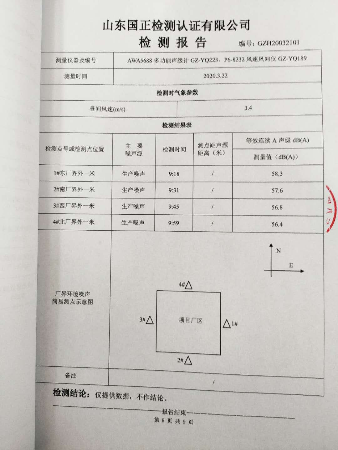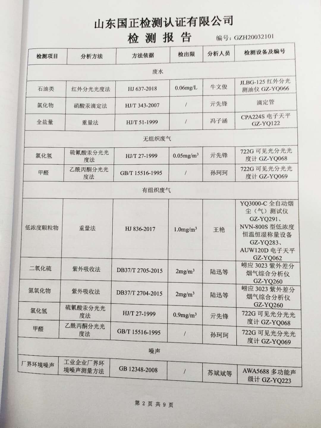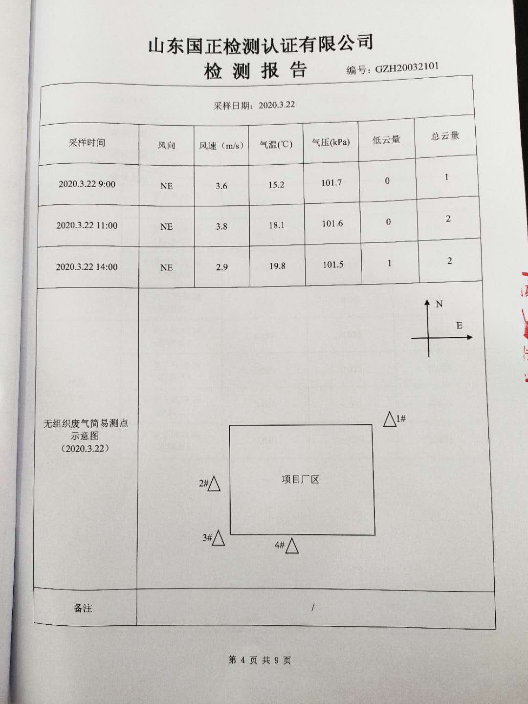 | 主要內(nèi)容 | 與山東國(guó)正檢測(cè)認(rèn)證有限公司簽訂環(huán)境檢測(cè)協(xié)議,委托第三方機(jī)構(gòu)對(duì)我公司進(jìn)行環(huán)境檢測(cè),檢測(cè)頻次、地點(diǎn)及項(xiàng)目等與環(huán)評(píng)報(bào)告要求一致。 |