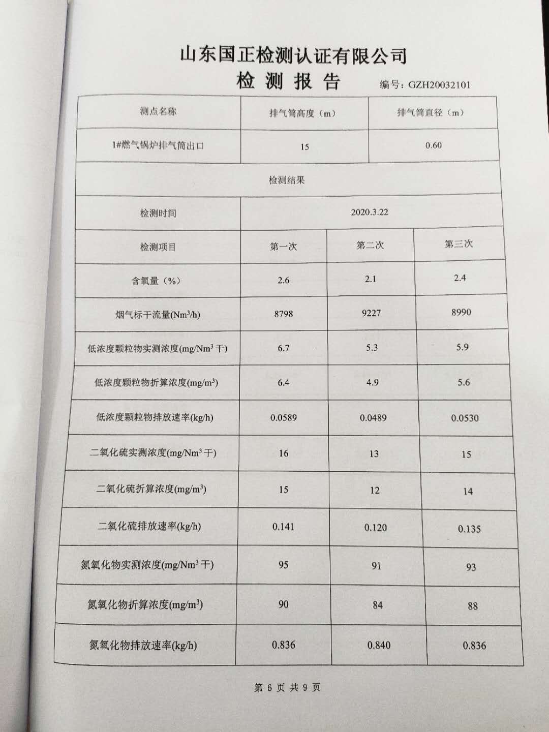 | 內(nèi)容 | 排放物種類及性質(zhì):二氧化硫、氮氧化物 總量控制指標(biāo):二氧化硫19.72噸/年,氮氧化物17.98噸/年 年排放量:二氧化硫19.72噸/年,氮氧化物17.98噸/年 日排放量:二氧化硫65.7kg,氮氧化物59.9kg 排放濃度:二氧化硫200mg/立方米,氮氧化物250mg/立方米 排放方式:間歇 排放去向:大氣 | |||
